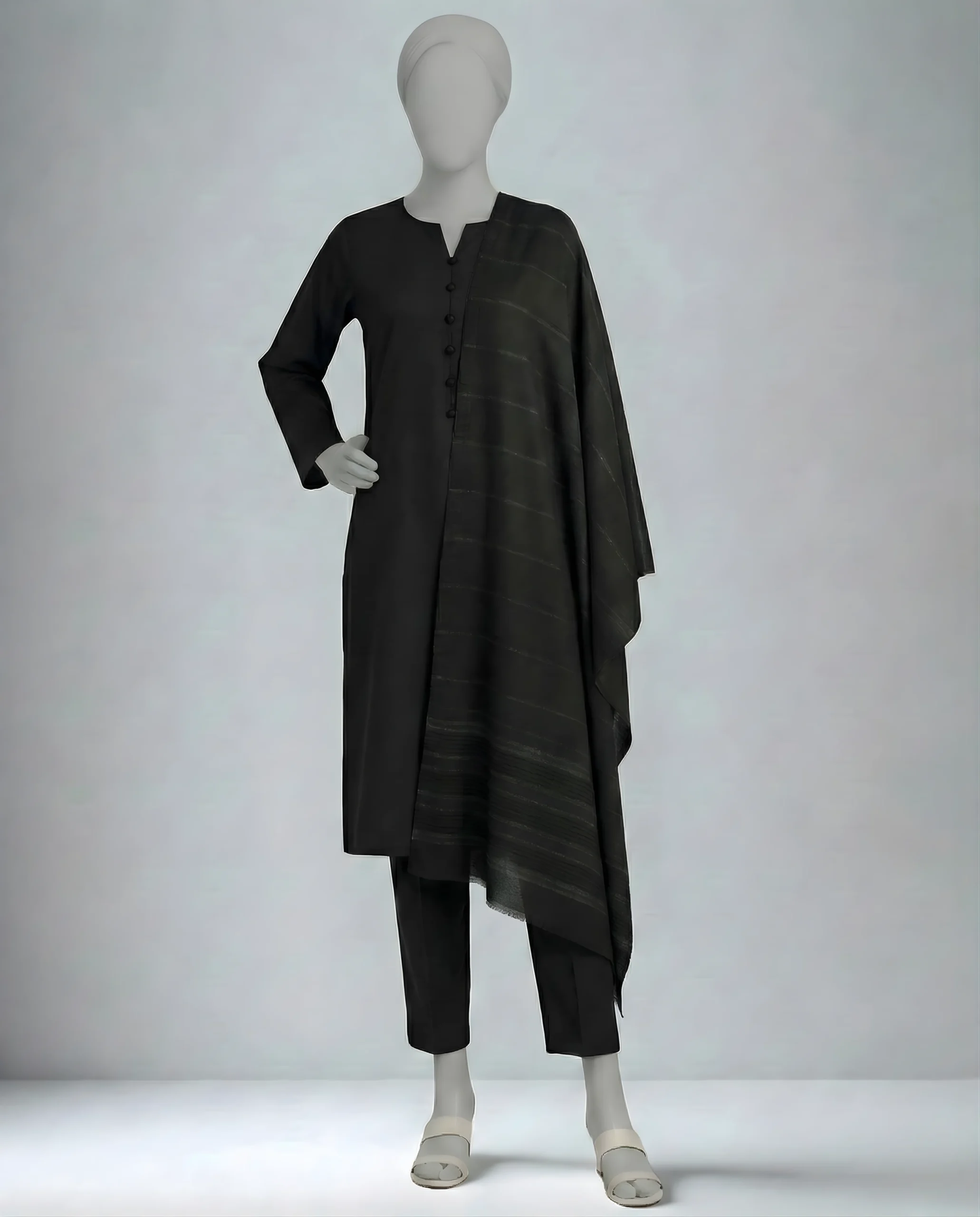 and trouser. It comes with a ready-to-wear Pashmina Wool shawl for a refined and elegant