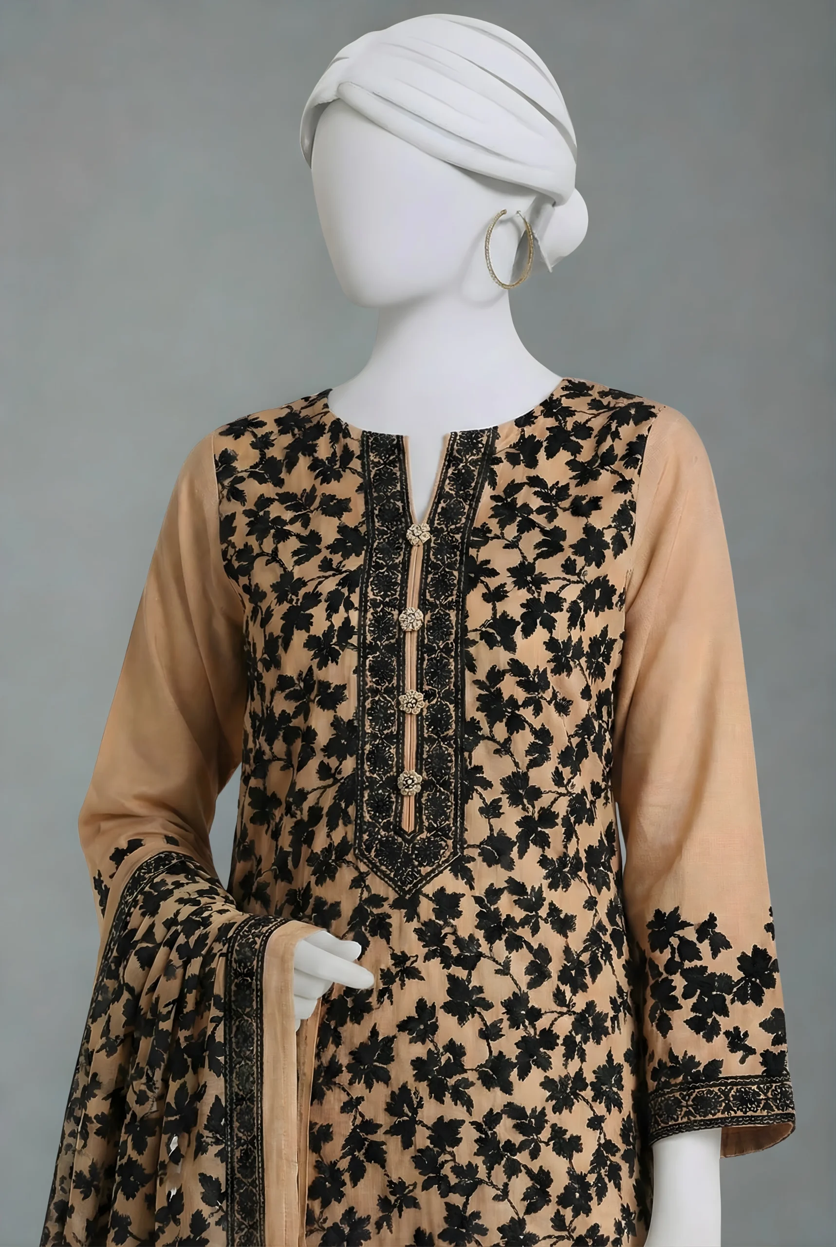 Introducing our three-piece beige Marina suit, featuring a printed Marina shirt paired with a plain Marina trouser. The look is completed with a ready-to-wear printed Marina shawl for a soft, elegant finish.